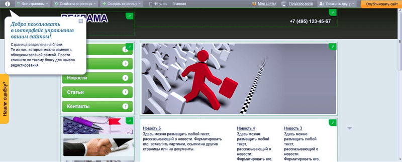 6. Теперь вы можете самостоятельно заполнять разделы необходимым контентом и выпускать сайт в «большое интернет-плавание».