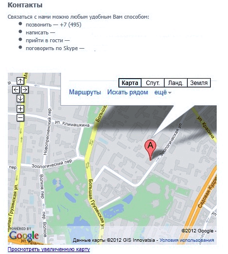 6. Создайте страницу с контактами. Укажите там все способы связи с вами: электронная почта, номер мобильного телефона, профиль в Skype, ICQ и т. д.