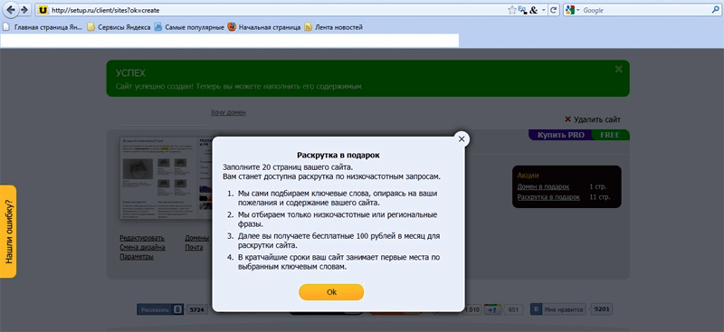 Setup.ru дает вам возможность автоматически раскручивать любой сайт в поисковых системах бесплатно.